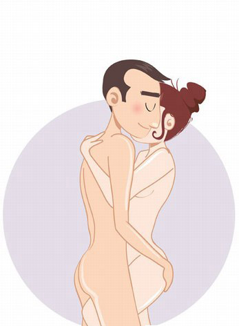 两人面对面侧卧着相拥在一起,你们能感觉到彼此的心跳声。呼吸声。增加彼此的亲密度。