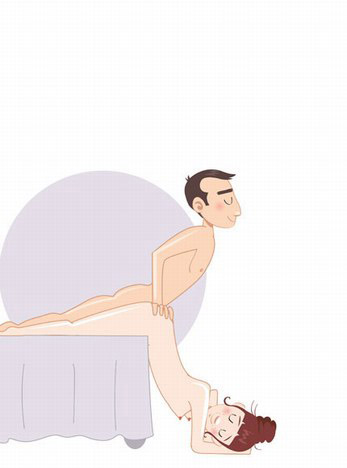 这需要你家里有一张高度适宜的桌子,女人躺在上面,头部垫着枕头,而男子则站在桌子的边缘,直接挺入女性的阴道。非常的省体力,而此时解放了的双手可以用来抚摸女性的胸脯,引起女人的兴奋哦。这种垂直站立式的姿势非常赞。